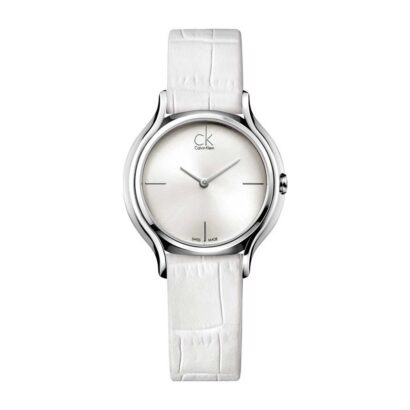 The Calvin Klein City Features Stamped Horizontal Lines In A Silver, Black Or Blue Dial With A Polished Stainless Steel Circular Case.