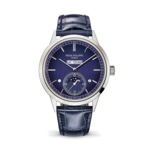 Tradition wristwatch in 18-carat white gold. Hand-wound movement with power reserve indicated on the dial and on the back. Off-centred silvered gold dial, hand-engraved on a rose engine. Sapphire ...